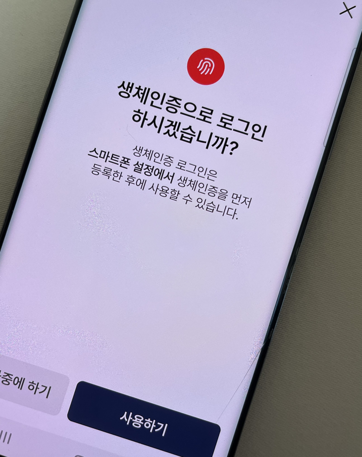 추가로 지문이나 얼굴인식 방법으로 선택하여 생체인증이 가능합니다. 생체인증이 편하기때문에 추가로 인증을 해주었습니다.